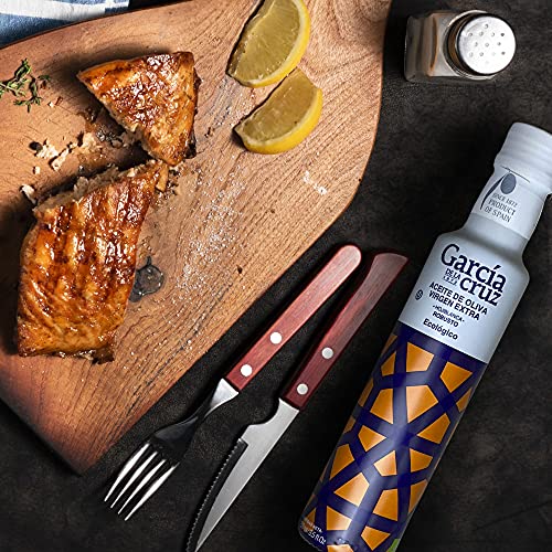 Specificaties: GARCÍA DE LA CRUZ – Biologische extra vergine olijfolie, variëteit Hojiblanca, enkelvoudige variëteit, zachte body…